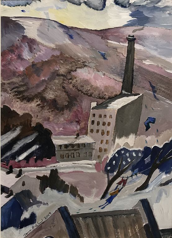 "Fly Away Washing. Bingley" acrylic on paper 44 x 35 cm. (framed) Original - available - £220