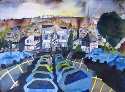 "Kiss, Co-op, Copydex …Cars, Cars, Cars" Watercolour 82 x 100 cm. (framed) Original - available |