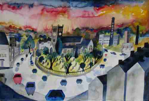 "Listening Cars, Bingley" Watercolour 98 x 75 cm. (framed)