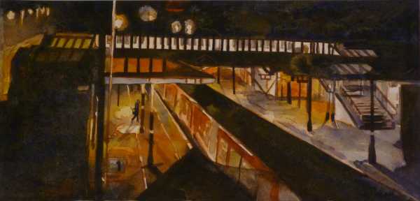 "The Night Traveller, Bingley" Watercolour 42 x 63 cm. (framed) Original -